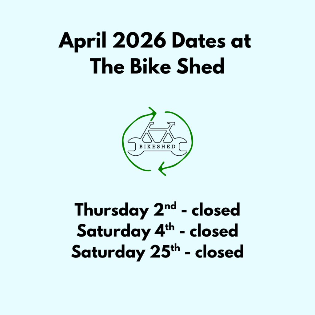Please note that The Bike Shed is a small organisation and may occasionally need to close due to unforeseen circumstances, such as extreme heat. We keep our Google Profile and Instagram Page updated with current information, so please double-check we are open before coming down.